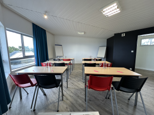 We offer four modular meeting rooms ranging from 25 to 100 square meters, which can accommodate up to 90 participants.